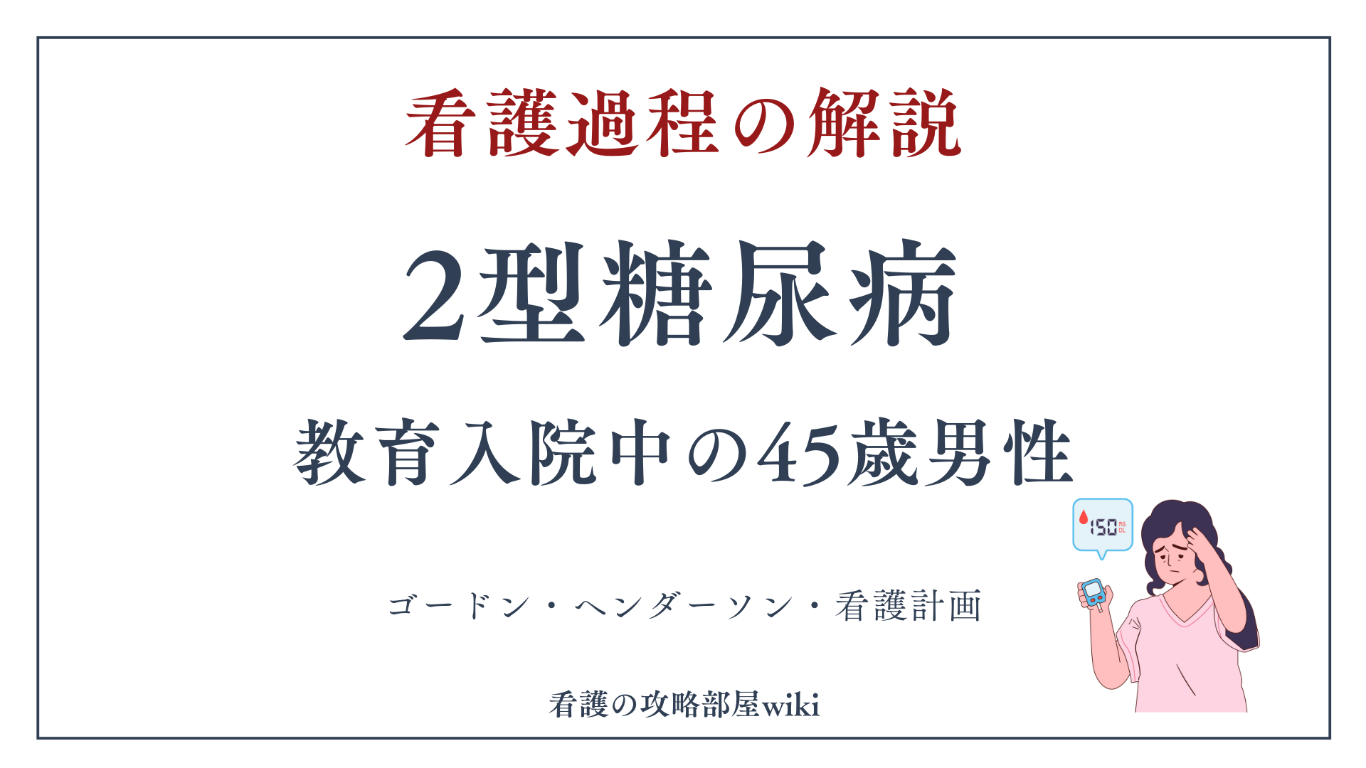 2型糖尿病の教育入院中で食事療法と運動療法の導入期にあり、服薬アドヒアランスの改善と生活習慣の見直しが必要な45歳男性の事例である。介入日は1月15日、入院3日目である。