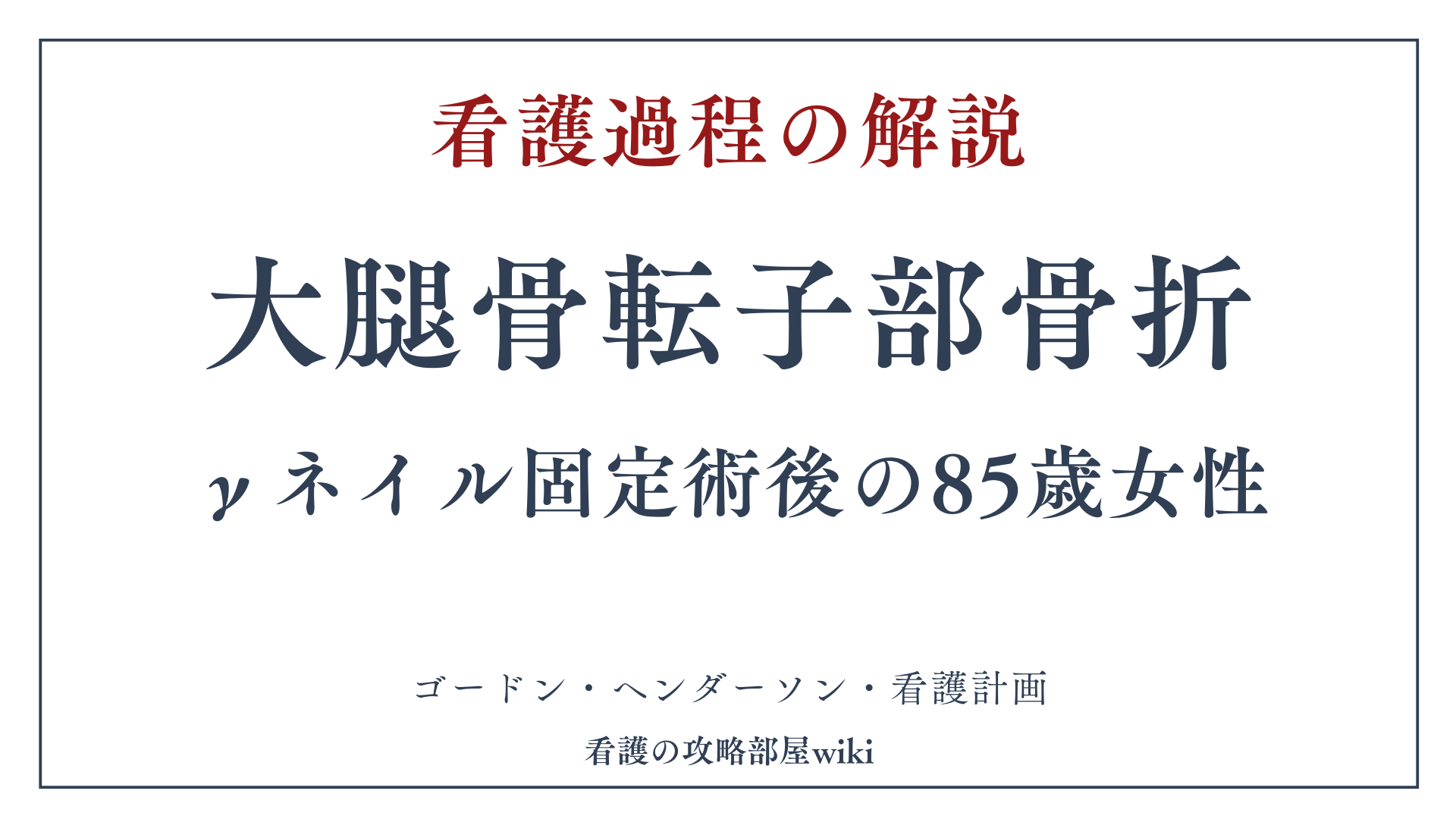 右大腿骨転子部骨折に対してγネイル固定術を施行された85歳女性で、術後3週間が経過した段階において、身体的回復は概ね良好に進んでいるものの、本人の早期杖歩行獲得と茶道教室再開の希望と、家族が重視する安全な在宅復帰との間に目標の相違がみられ、加えて夜間不眠と不安症状の出現がみられるという事例です。介入日は●月●日で、入院から現在まで21日目となります。