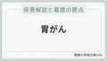 看護の要点として、疼痛アセスメントと緩和、出血徴候の早期発見、栄養状態の維持が中核となります。患者さんの症状パターンを把握し、個別性を重視したケアを提供することが大切です。