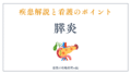 看護のポイントは、急性期における安静と栄養管理、黄疸と掻痒感のケア、バイタルサインと検査データの継続的モニタリングです。特に掻痒感は患者さんのQOLを著しく低下させるため、保湿や冷罨法により症状を軽減します。