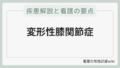 - 疼痛管理:処方薬の適切な服薬指導、温熱療法の実施、安楽な体位の指導(側臥位で膝関節屈曲、仰臥位で膝下にクッション)