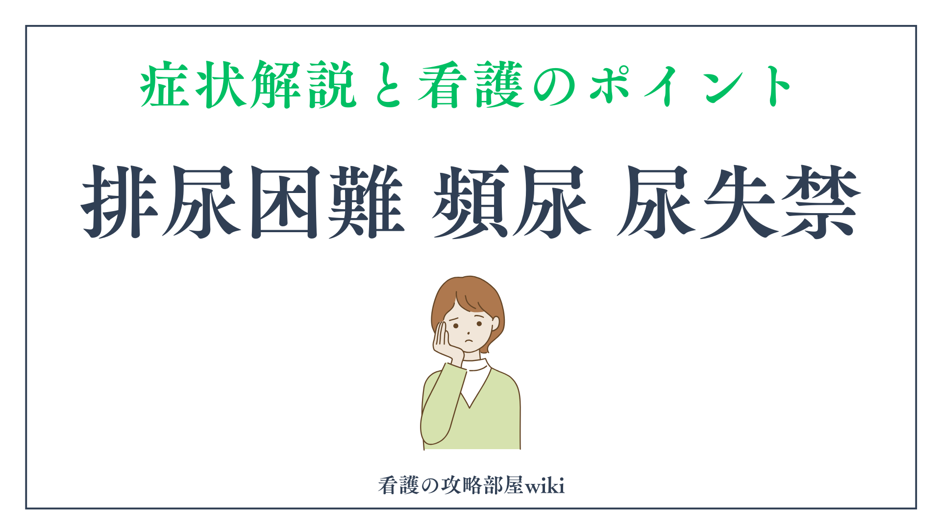 排尿困難は尿を出したいのに十分に排出できない状態、頻尿は日中8回以上または夜間2回以上の排尿、尿失禁は意図しない尿の漏れが起こる状態