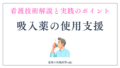 意識レベルが低下している患者さんでは、咳嗽反射や嚥下反射が低下している可能性があります。特に点鼻時は薬液の誤嚥リスクがあるため、頭部の位置を適切に保持し、少量ずつ慎重に投与します。実施後は口腔内の観察を行い、薬液の流入がないことを確認します。