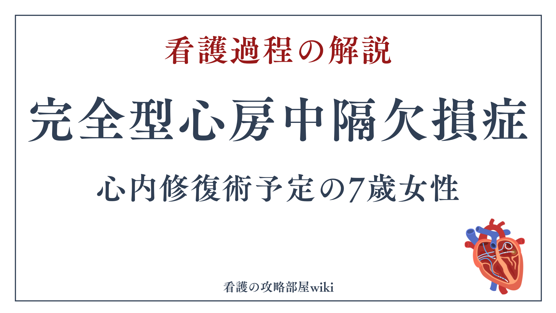 完全型心房中隔欠損症の診断を受け、心内修復術の予定で入院した7歳女児の事例。介入日は10月15日で入院3日目、手術予定日の前日である。