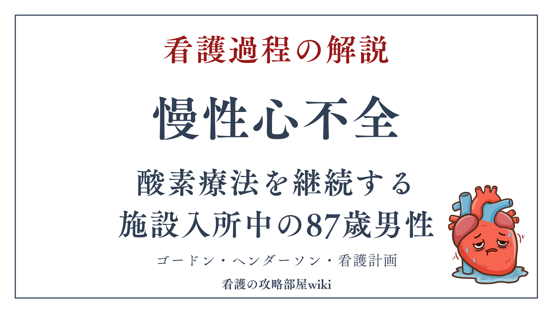 慢性心不全の増悪により在宅から介護老人保健施設に入所し、10月15日から酸素療法を継続しながら生活している87歳男性という事例。介入日は11月8日、入所から24日目である。