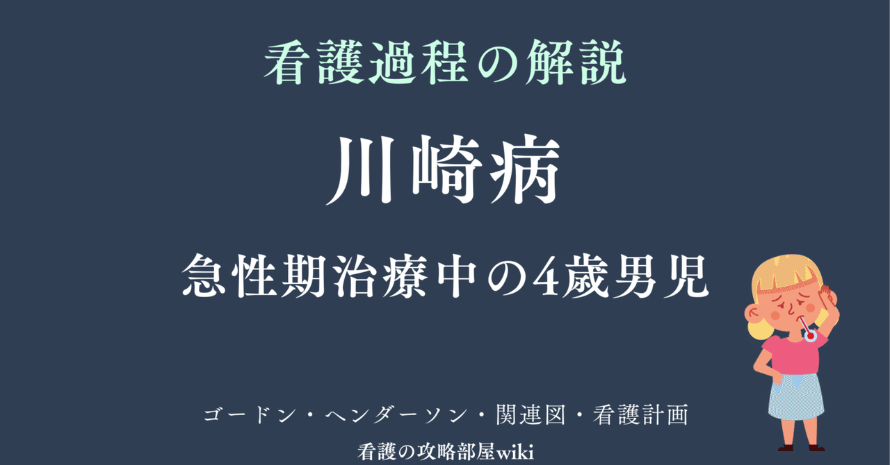 川崎病の急性期における全身炎症反応と、それに伴う食欲不振、水分代謝の変化、皮膚・粘膜の状態を総合的に評価することが重要です。また、幼児期の成長発達に必要な栄養摂取と、治療効果判定に関わる血液データの変化を関連付けてアセスメントする必要があります。
